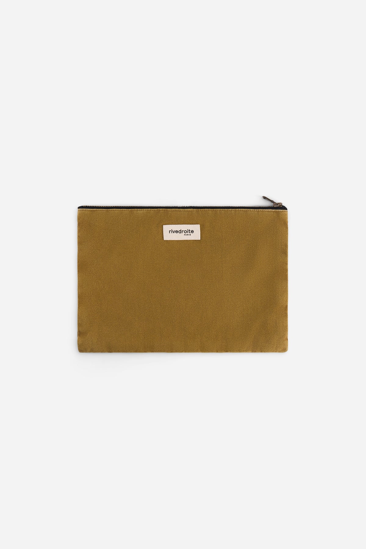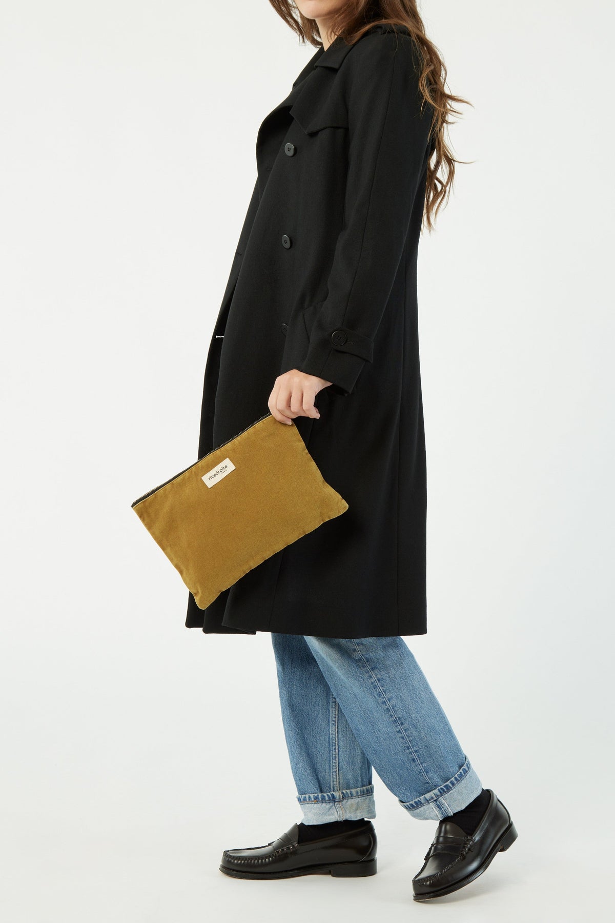 In its “Golden Green” version, an ultra-soft, vintage green that reveals the rough edges of upcycled denim fabric at the seams, and which will develop a patina over time, like the jeans you love to wear every day, Barbette the clutch is your must-have this autumn. Whether it's for storing your daily essentials - papers, hydro-alcohol gel, keys - or organizing your luggage when you travel - lingerie, swimwear - it's also perfect for keeping your cables and other electronic accessories in order. Its versatility and vintage charm are sure to win you over.