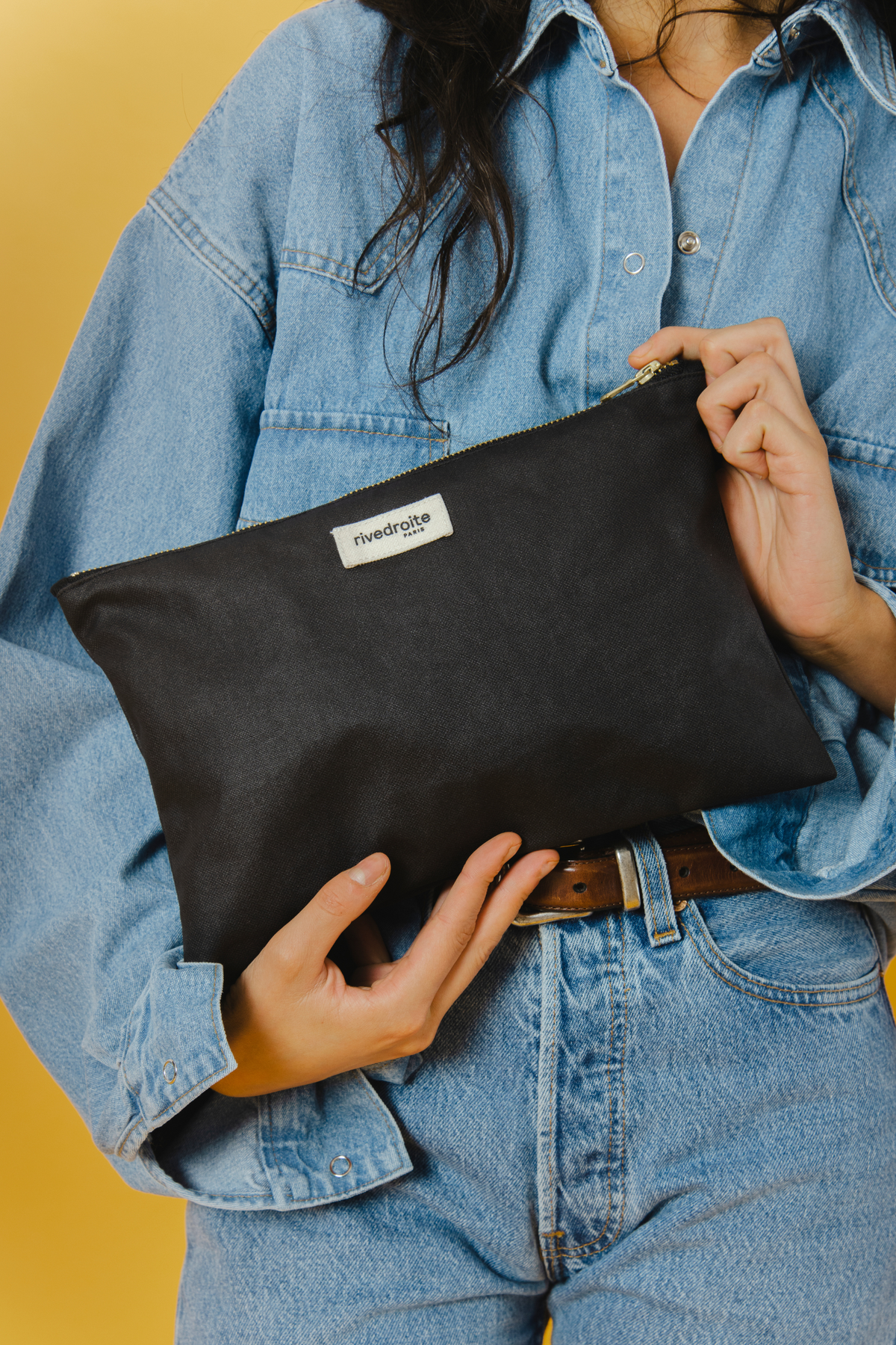 Barbette Medium la pochette Coton recyclé ciré Noir
