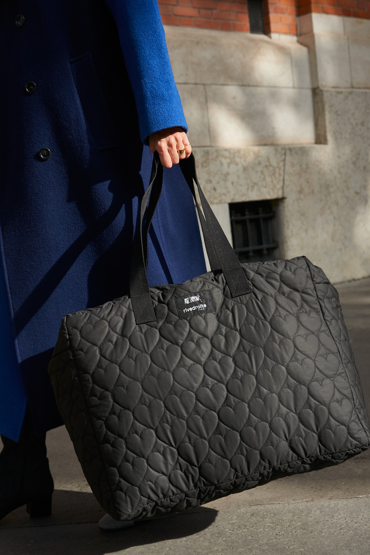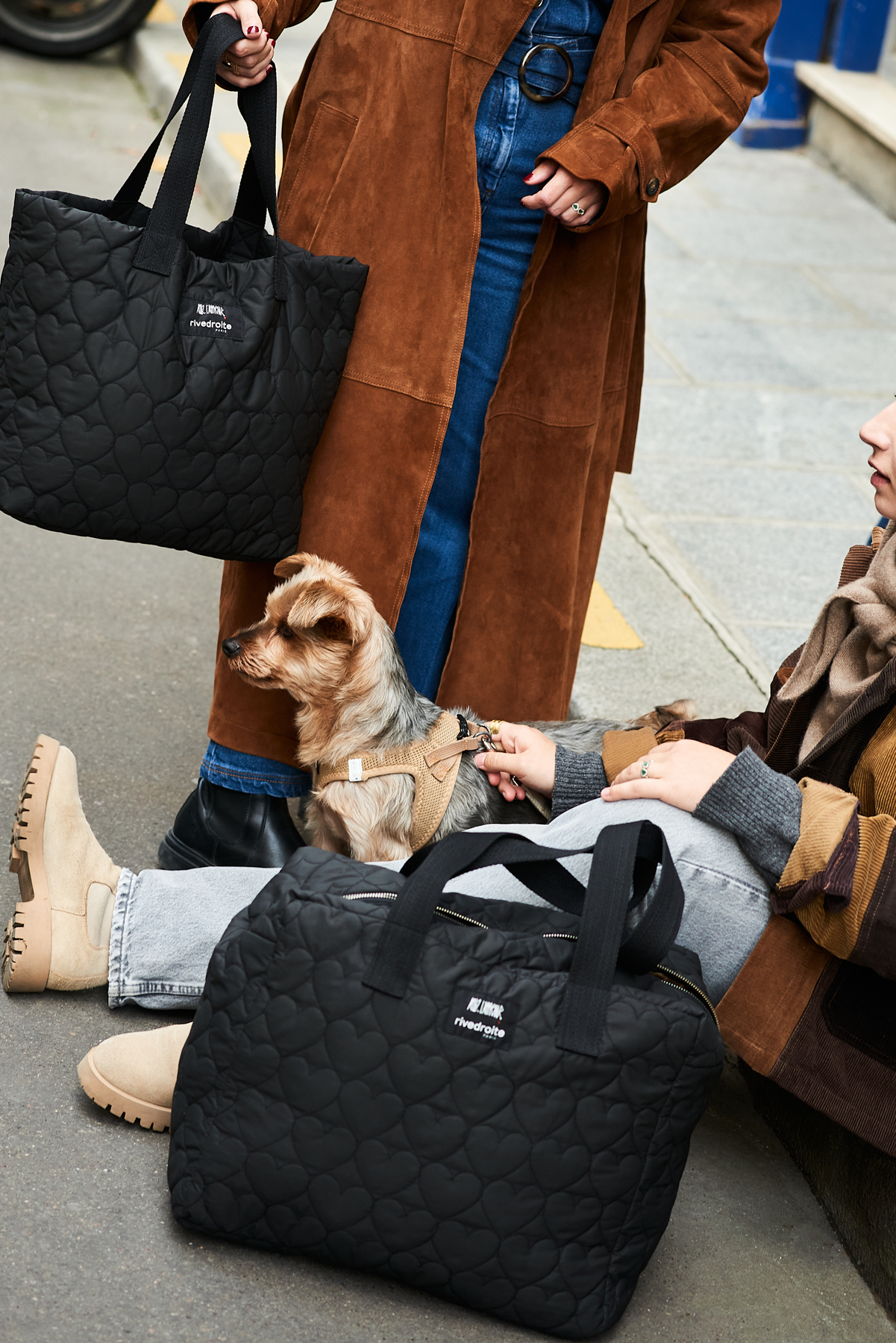 ÉDITION LIMITÉE - À l'occasion de notre collaboration avec ALLEZ L'AMOUR, Elzévir se pare de coeurs délicatement brodés, à l'effet matelassé. Il est confectionné à partir d'une toile de nylon upcyclée noire, pour être associé à toutes vos tenues. Nous reversons 1€ par commande à l'association SOS Préma.