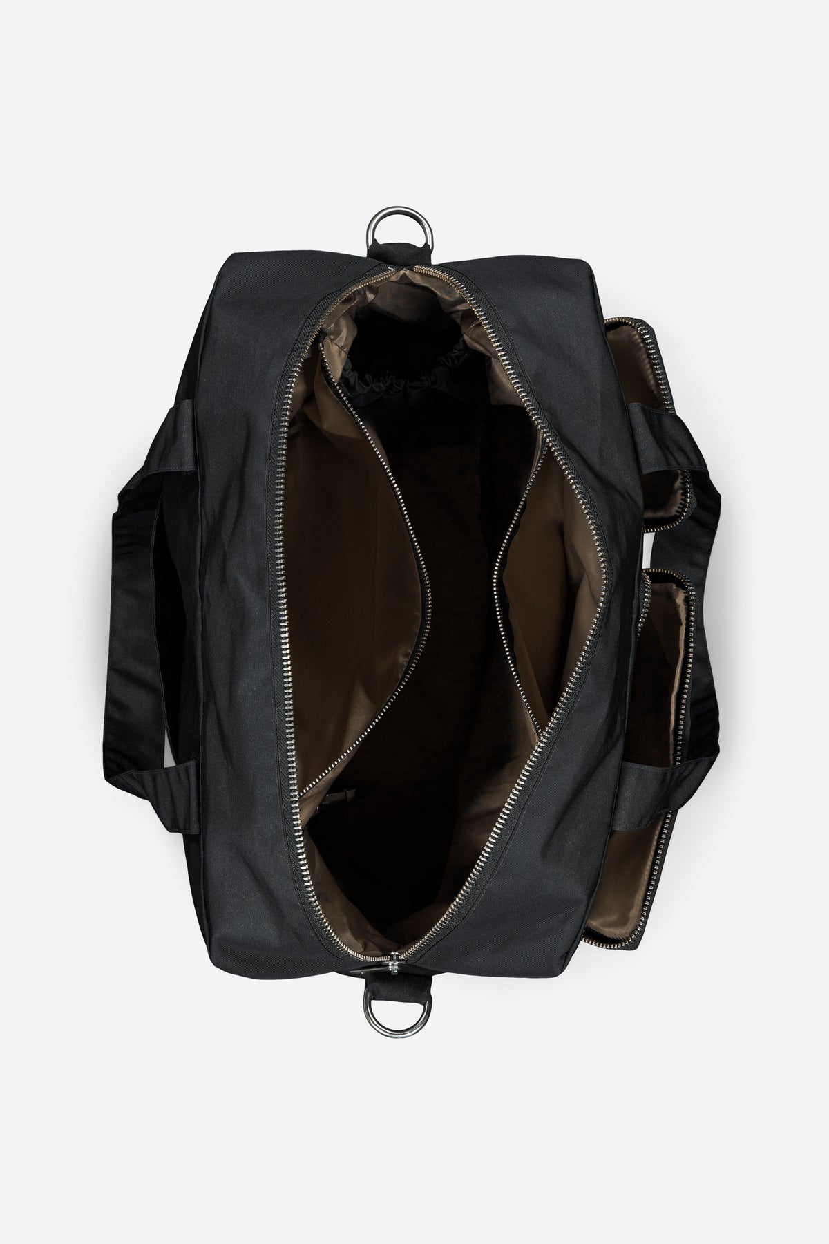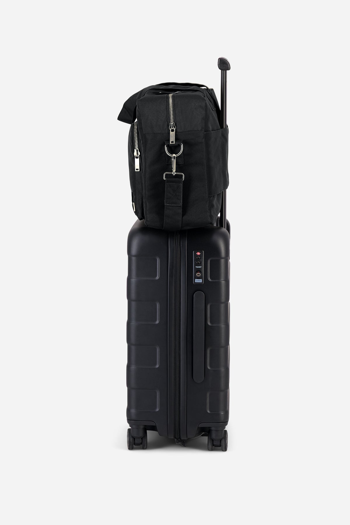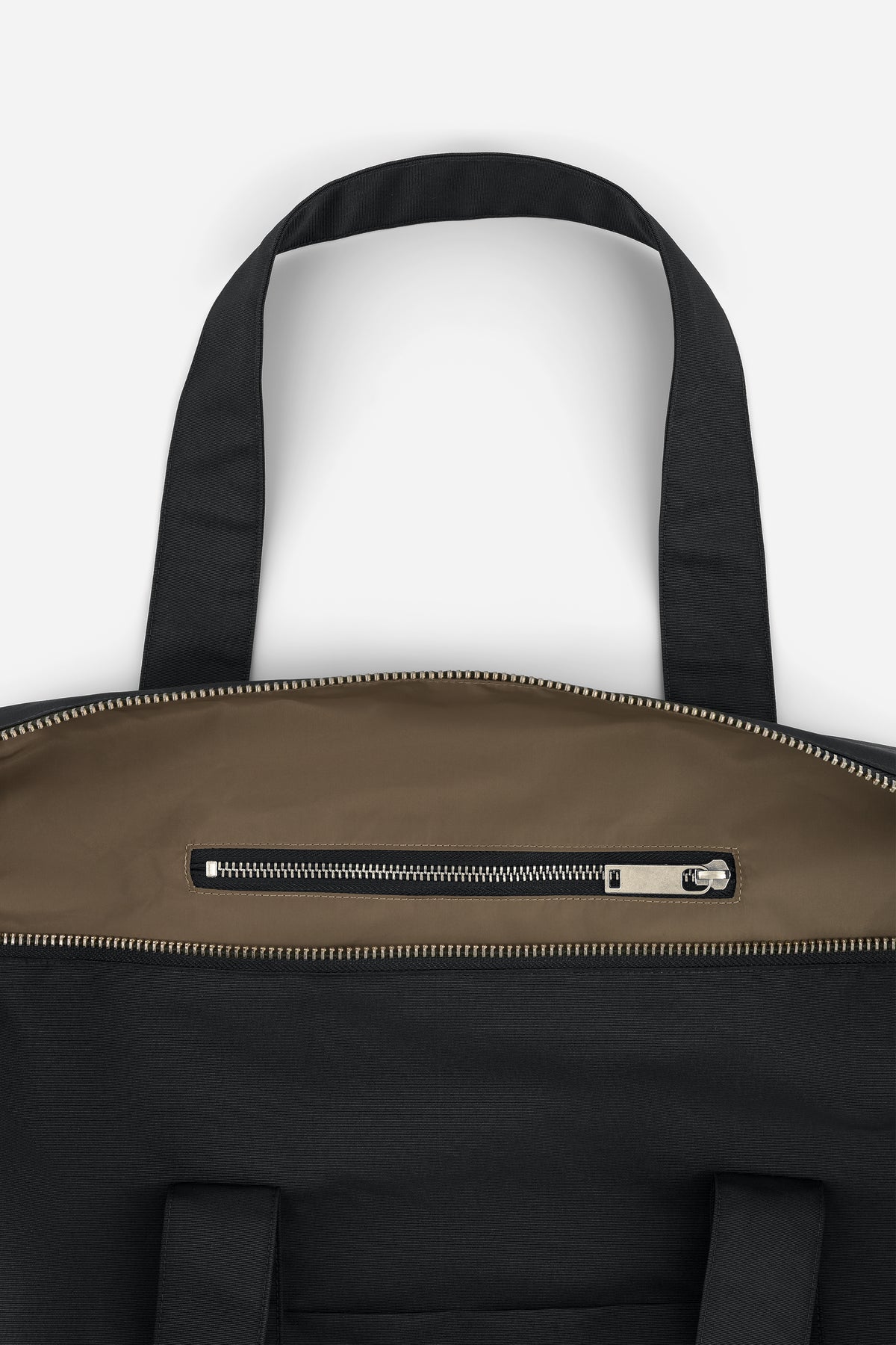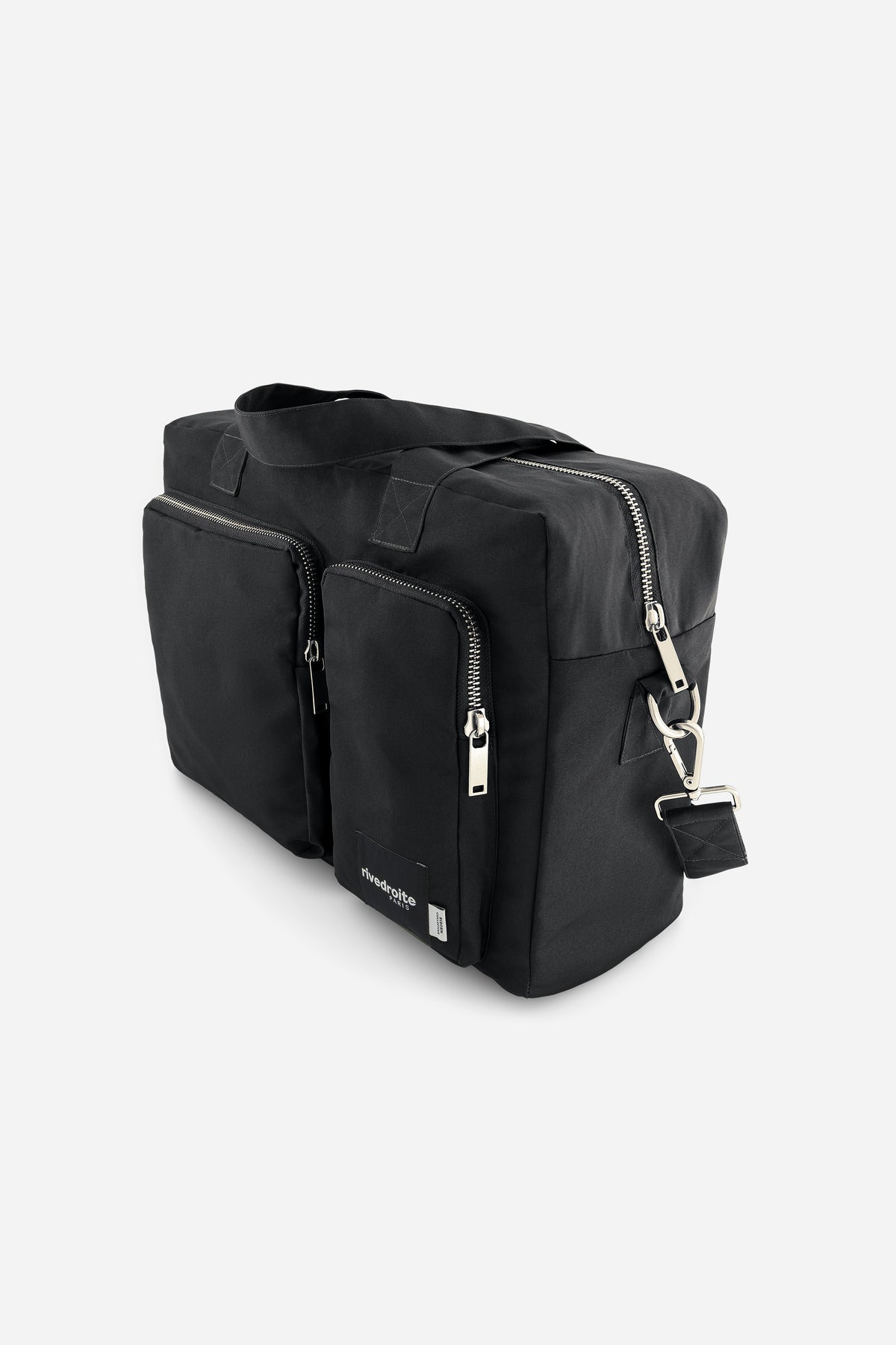 À l’extérieur, deux grandes poches zippées permettent de garder l’essentiel à portée de main : téléphone, portefeuille, livre... À l’intérieur, une poche compartimentée accueille facilement un ordinateur 16 pouces. Un grand espace central permet de ranger 2 tenues complètes, une paire de chaussures et une trousse de toilette. Sa grande bandoulière croisée en fait un vrai city bag, confortable à porter à l’épaule ou en crossbody.