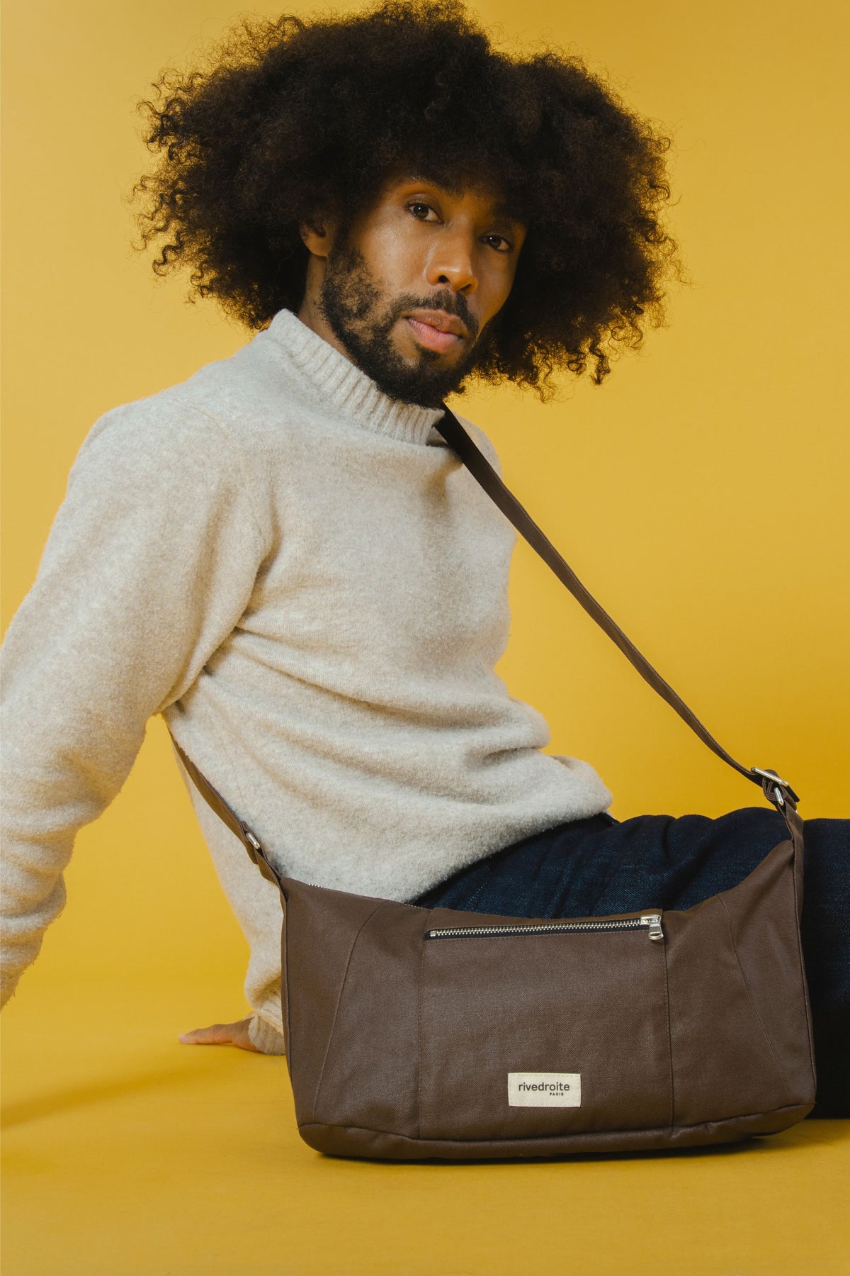Mini Charlot le sac Crossbody Coton recyclé ciré Marron Chocolat