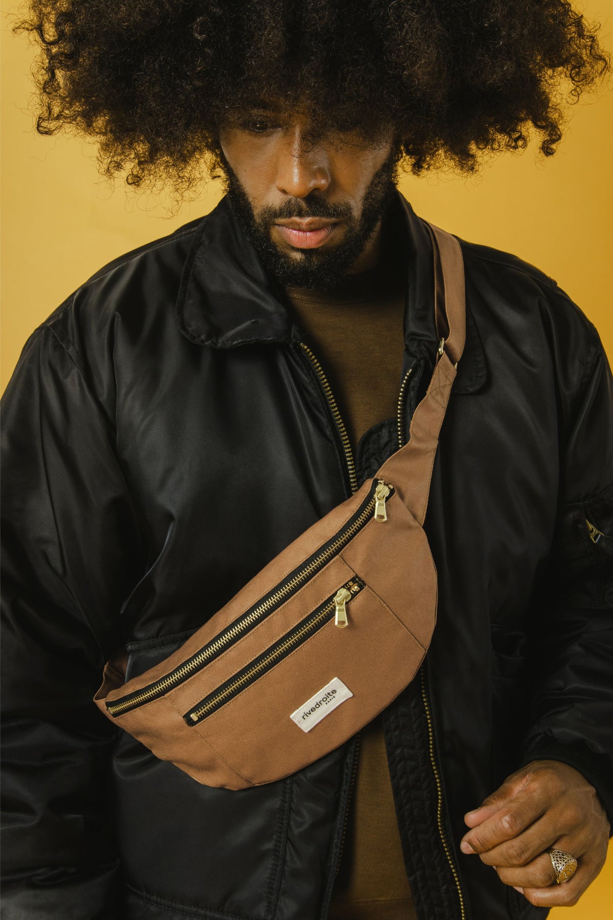 Orsel le sac banane grand format Coton recyclé ciré Marron Noisette