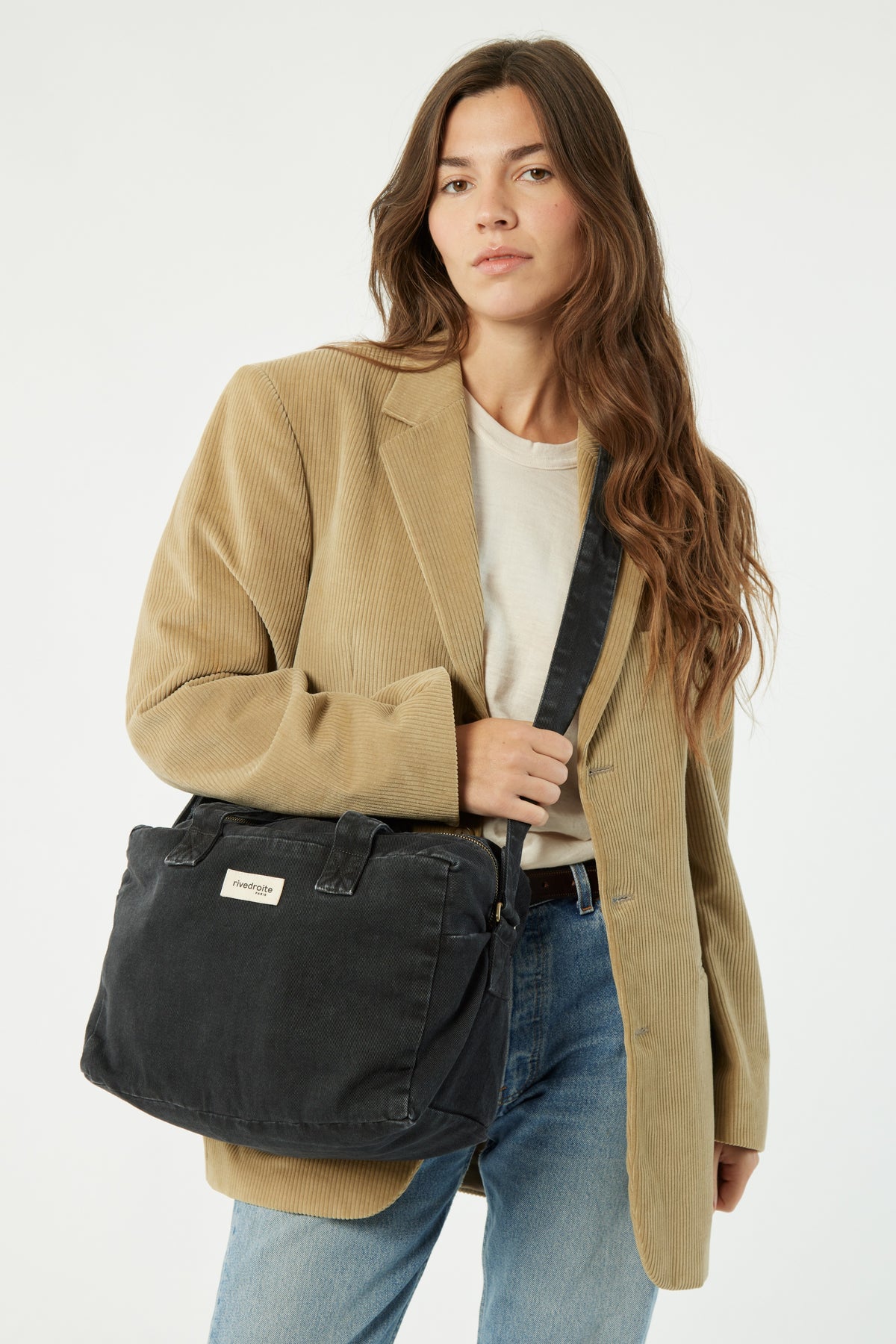 Découvrez Sauval, votre city bag incontournable dans son nouveau noir automnal de la collection Camden, un noir teint sur du denim upcyclé, qui va se patiner au fil du temps et révéler ses aspérités près des coutures comme votre jeans vintage préféré .